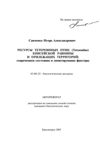 Ресурсы тетеревиных птиц (Tetraonidae) Енисейской равнины и прилежащих территорий