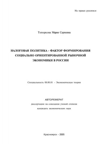 Налоговая политика - фактор формирования социально ориентированной рыночной экономики в России