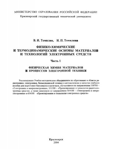 Физико-химические и термодинамические основы материалов и технологий электронных средств. Ч. 1….