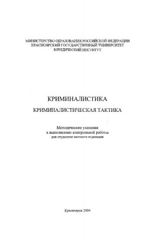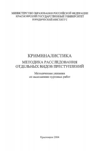 Криминалистика. Методика расследования отдельных видов преступлений