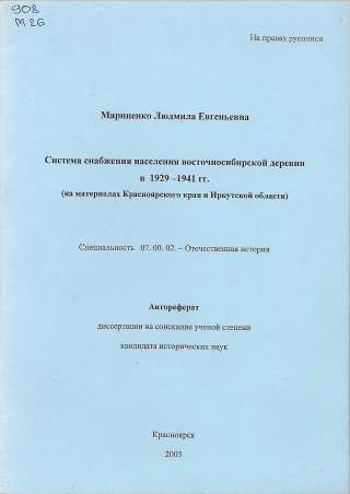 Система снабжения населения восточносибирской деревни в 1929-1941 гг. (на материалах…