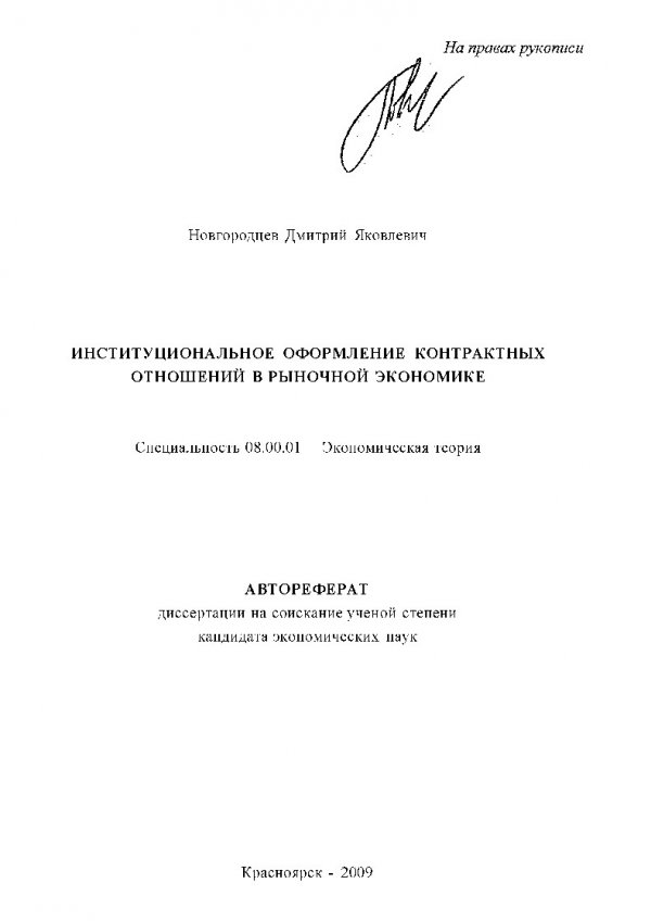 Институциональное оформление контрактных отношений в рыночной экономике