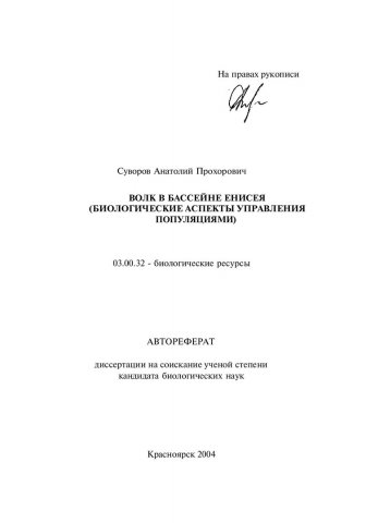 Волк в бассейне Енисея (биологические аспекты управления популяциями)
