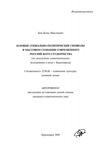Базовые социально-политические символы в массовом сознании современного российского студенчества …
