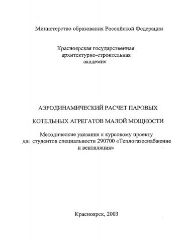 Аэродинамический расчет паровых котельных агрегатов малой мощности